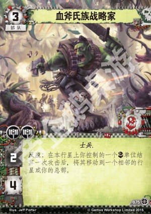 文本反应:在本行星上你控制的一个兽人单位结算一次攻击后,将其移动到一个相邻的行星或你的总部。