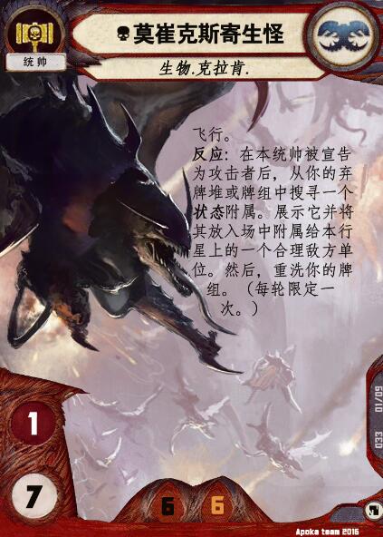 反应:在本统帅被宣告为攻击者后,从你的弃牌堆或牌组中搜寻一个