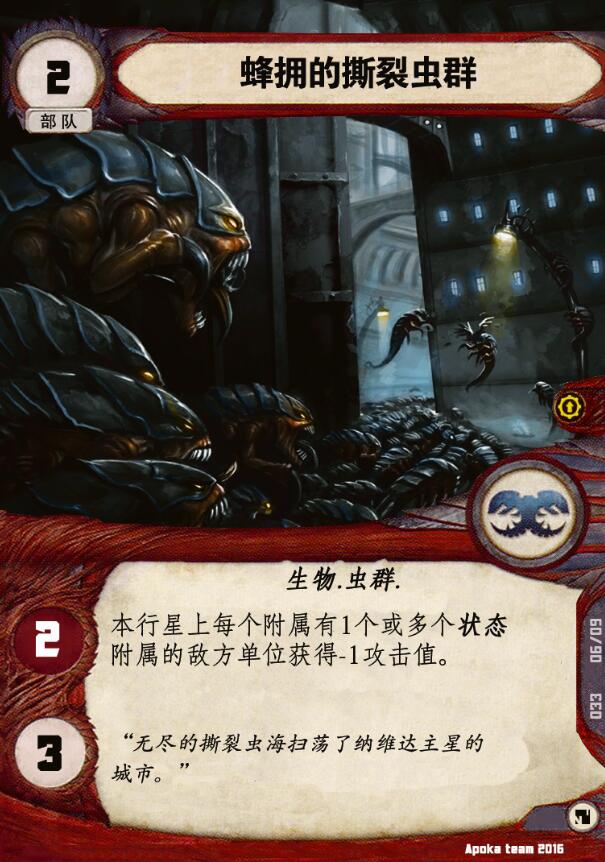 文本本行星上每个附属有1个或更多状态附属的敌方单位获得-1攻击值。