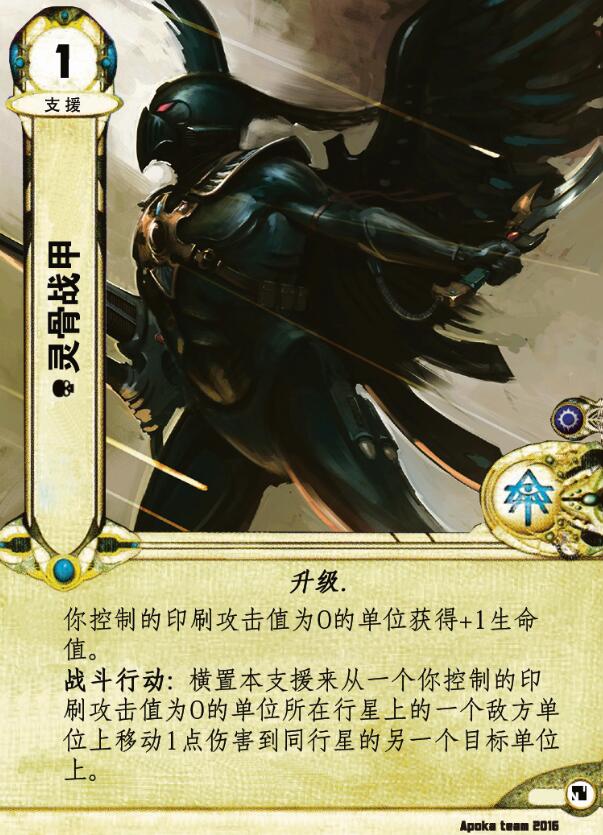 战斗行动:横置本支援来从一个你控制的印刷攻击值为0的单位所在行星上的一个敌方单位上移动1点伤害到同行星的另一个目标单位上。