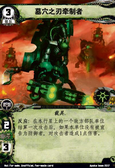 反应:在本行星上一个敌方部队单位结算一次攻击后,如果本单位没有被宣告为防御者,对攻击者造成1点伤害。