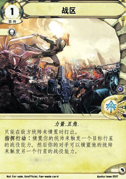 只能在敌方统帅未横置时打出。指挥行动:横置你的统帅来触发一个目标行星的战役能力。然后你的对手可以横置他的统帅来触发另一个行星的战役能力。
